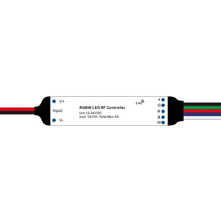 CTR-V4-N Centralina 12/24V RGBW small 10 progr. 4ch x 1A ingresso RF 2,4Ghz+push